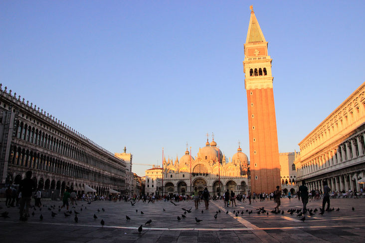 La torre inicial se construyó en el 888, pero la torre que se observa hoy es una reconstrucción de 1912, tras la caída de la torre de 1902.
