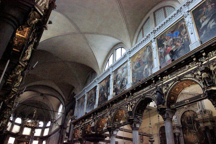 La proximidad de la Scuola dei Carmini a la iglesia del convento es evidente, manifestando el estrecho vínculo que siempre ha existido entre los Padres Carmelitas y los Hermanos de la Escuela.